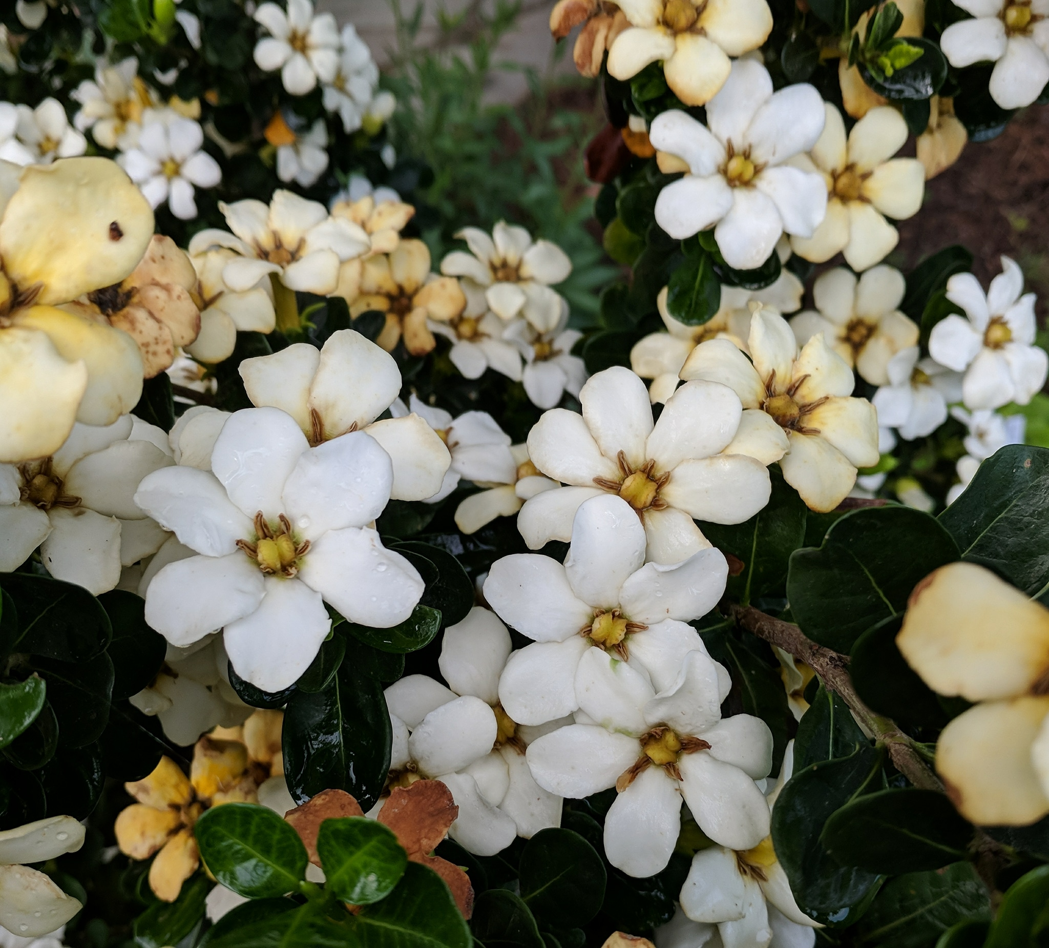 Lowrey’s Ghost is a variety that came from Anderson’s Nursery in Houston, a selection with just a touch of pink. I’m not totally sure of the history but . . . we like it. More white in full sun, pink hues in the shade.